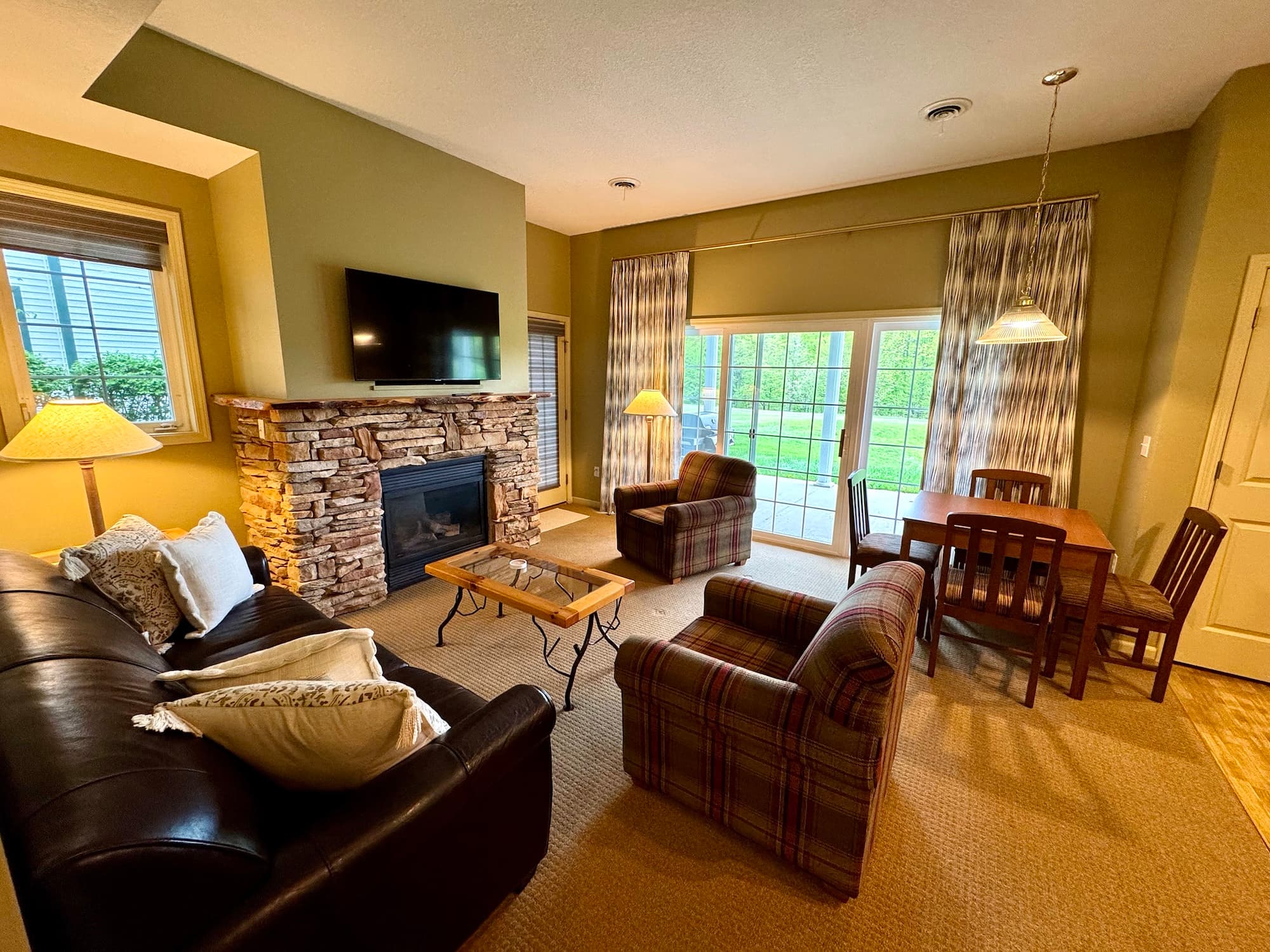 Each condo is a lock-out unit that can be combined for larger groups or families. Standard amenities include a full well-equipped kitchen, washer, dryer, fireplace, and smart TVs.